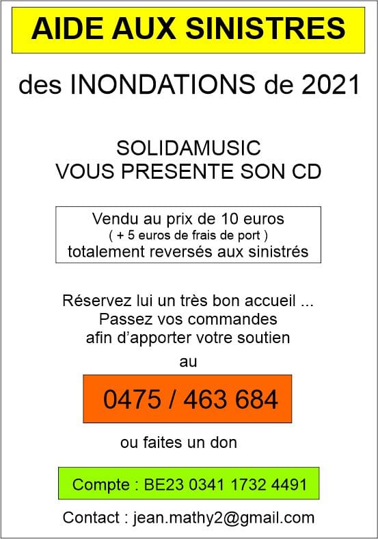 Le projet de Solida Music est de récolter des fonds pour venir en aide aux sinistré des inondations de 2021… qui n’ont pas encore été indemnisés ou qui risquent de ne jamais l’être et sont toujours dans le besoin.