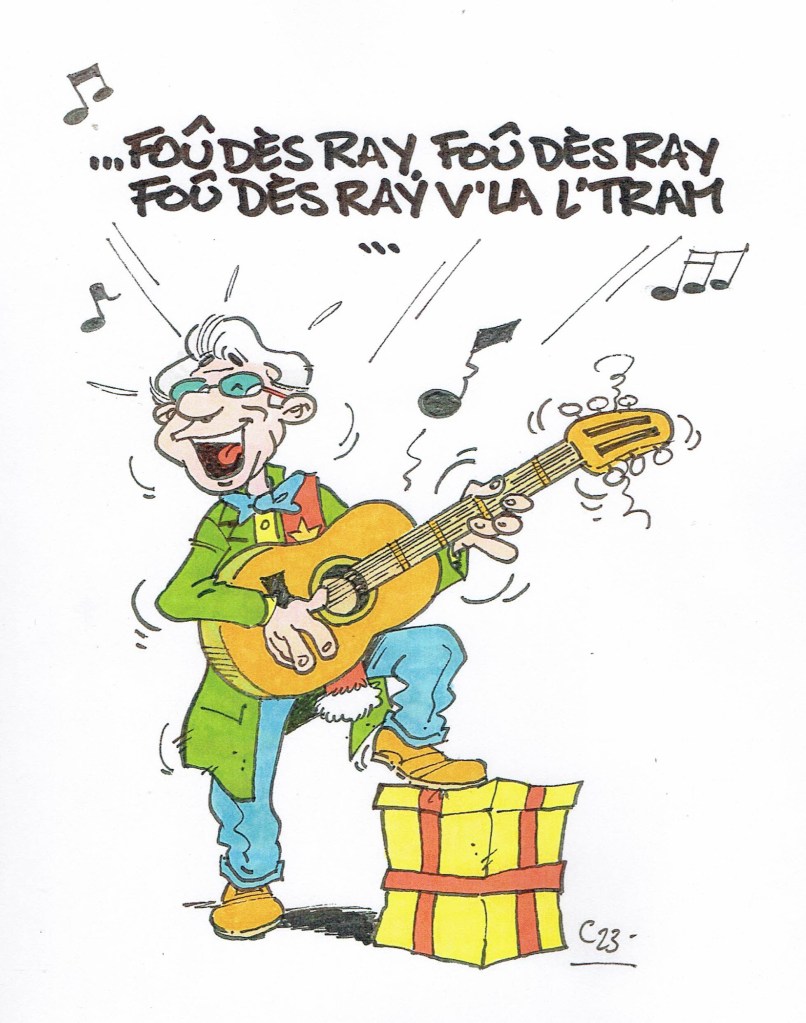 Michel Azaïs, le Troubadour du Village de Noël et Paul-Henri Thomsin, son Scriyeû public, se sont associés pour adapter et réécrire la chanson « Foû dès Ray », chantée à tue-tête par une cohorte de Romains dans une case de la BD « Astérix aman lès bèljes » : un clin d’œil humoristique et un peu frondeur, une « clignète » au futur tram de Liège. Entre deux bans liégeois, la chanson sera à nouveau interprétée par le Conseil Villageois, sur le podium de la « Coûr Jean-Denys Boussart » : de hauts moments du folklore liégeois et du Village de Noël !