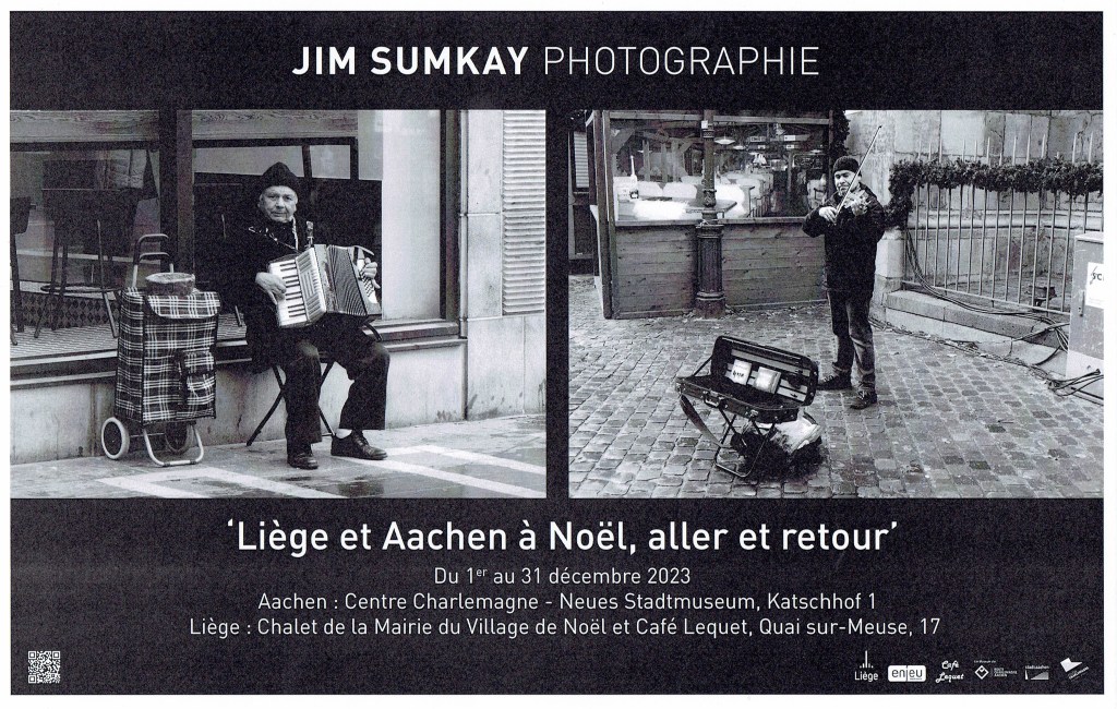 En complément des photos prises sur le vif autour du Village de Noël de Liège, Jim proposera des prises de vue remarquables sur la période de Noël et les « petites gens » rencontrées à Aachen, dans et autour du marché de Noël. Ce grand diaporama permanent, qui sera régulièrement mis à jour, sera proposé à Aachen au prestigieux Centre Charlemagne, un musée situé juste en face de leur Marché de Noël, du ler au 31 décembre, et à Liège, au sein de la Mairie du Village de Noël et sur le site web du Village de Noël, www.villagedenoel.be, avec un relais régulier sur la page Facebook du Village…